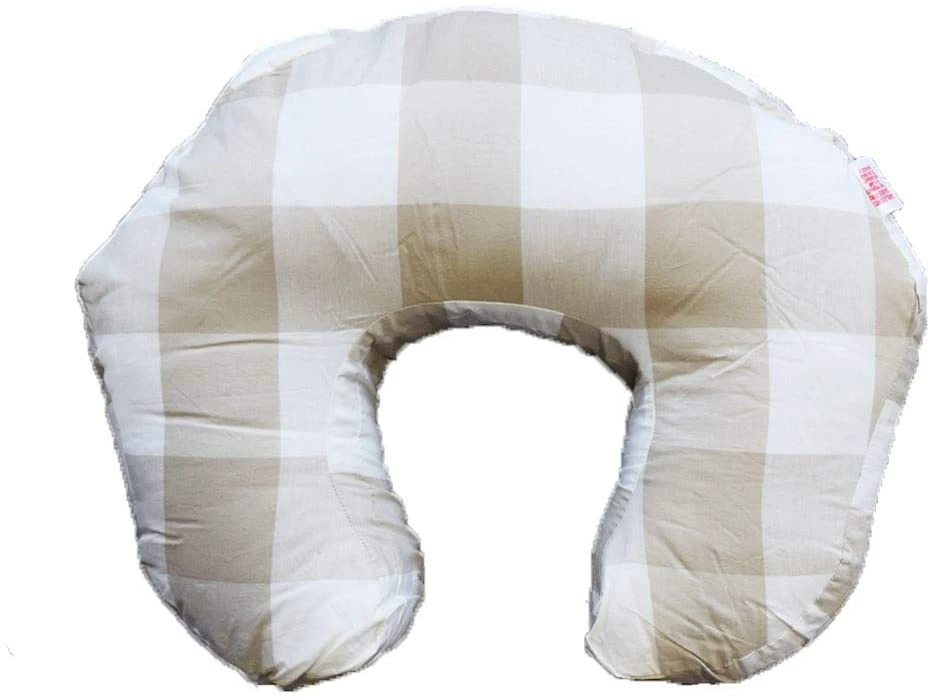 BABY FEEDING/NURSING PILLOW 2 DESIGNS IN 1 EGYPTIAN COTTON COVER – BEIGE CHECK/STRIPES(Baby Feeding Nursing Pillow 2 Designs In 1 Egyptian Cotton Cover Beige Check Stripes)