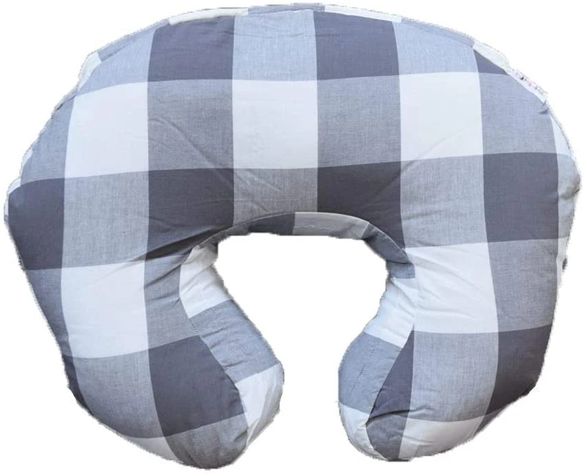 BABY FEEDING/NURSING PILLOW 2 DESIGNS IN 1 EGYPTIAN COTTON COVER – GREY CHECK/STRIPES(Baby Feeding Nursing Pillow 2 Designs In 1 Egyptian Cotton Cover Grey Check Stripes)