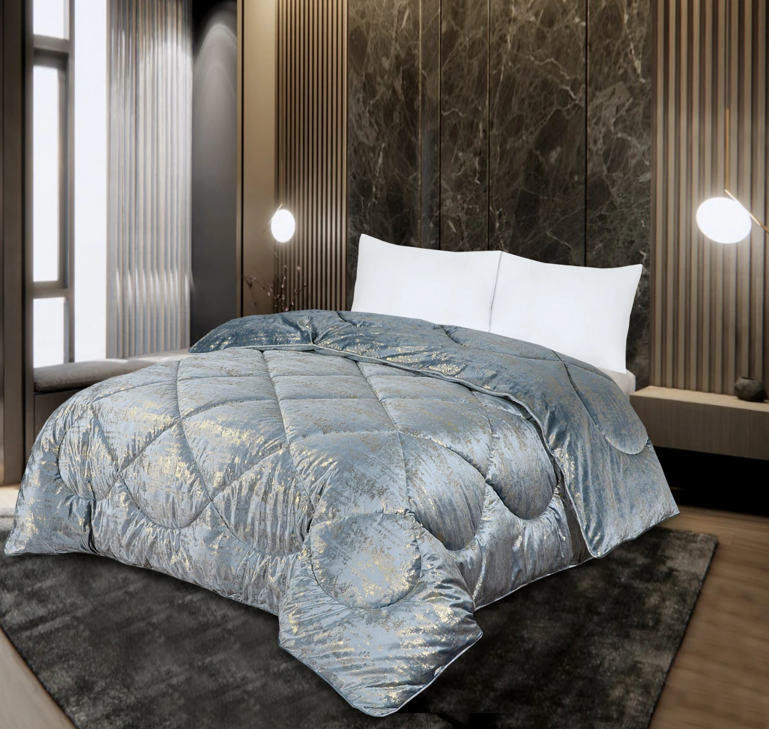 - Coverless luxurious duvet with velvet casing