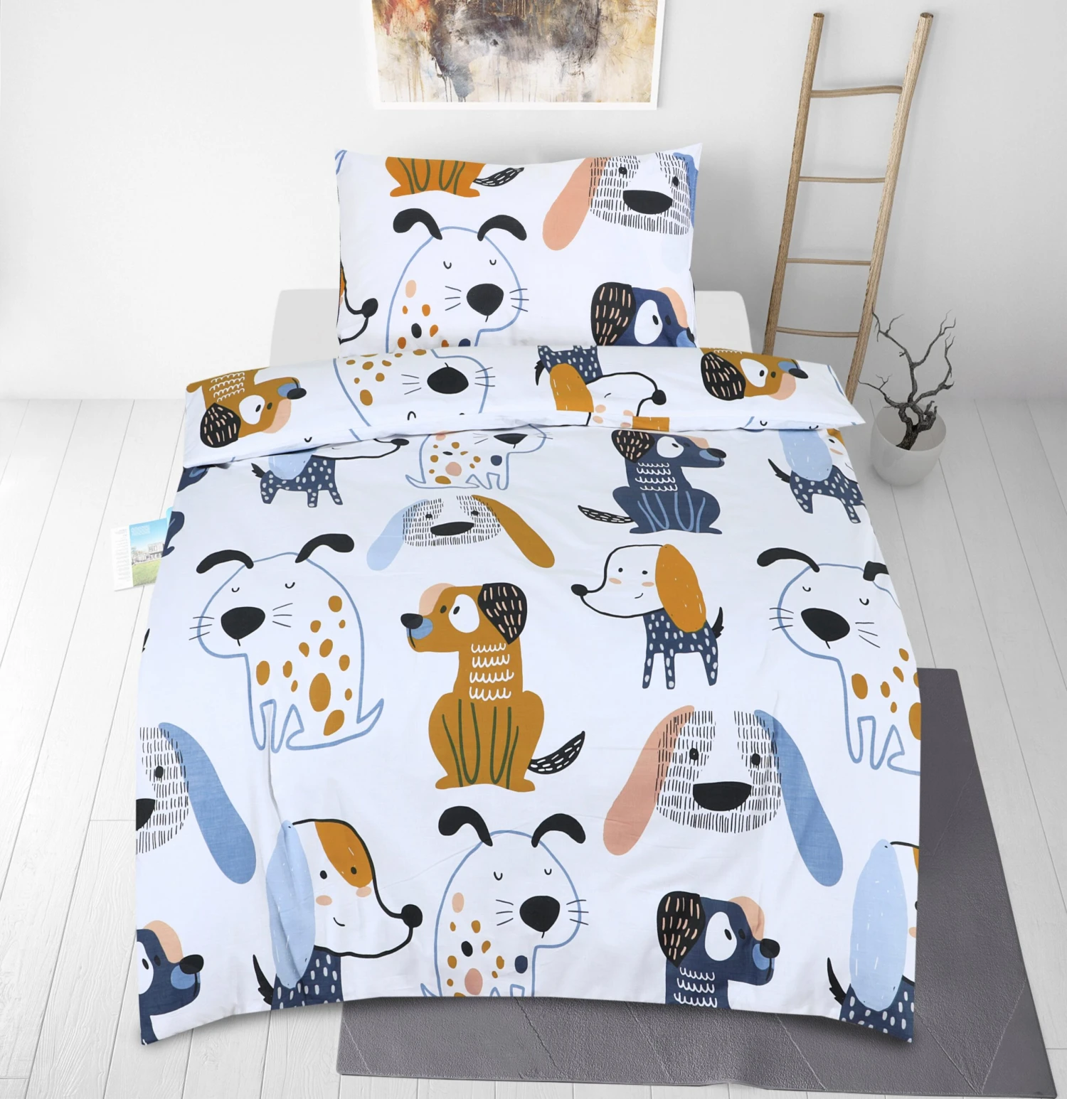 Junior Cot Bed Duvet Cover And Pillow Set- Cotton Rich 120 X 150 Cm – Funky Dogs(Junior Cot Bed Duvet Cover And Pillow Set Cotton Rich 120 X 150 Cm Funky Dogs)