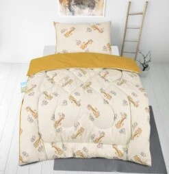 Kids and parents will love this coverless duvet and pillow set. Fun design will brighten any room and will make your kids want to go to bed and be tucked into the soft duvet. The duvet has a unique stitching pattern that keeps the fibre in place, so it should endure any amount of legs kicking, tossing and turning your child may be doing at night. Funky pattern of the quilt will be a great addition in your kid’s room. It’s a perfect product to keep your little one cosy all night. And the best part is, it can be washed in your washing machine any time! Not recommended for children under 12 months old. Keep away from fire. Ensure child’s face is uncovered.