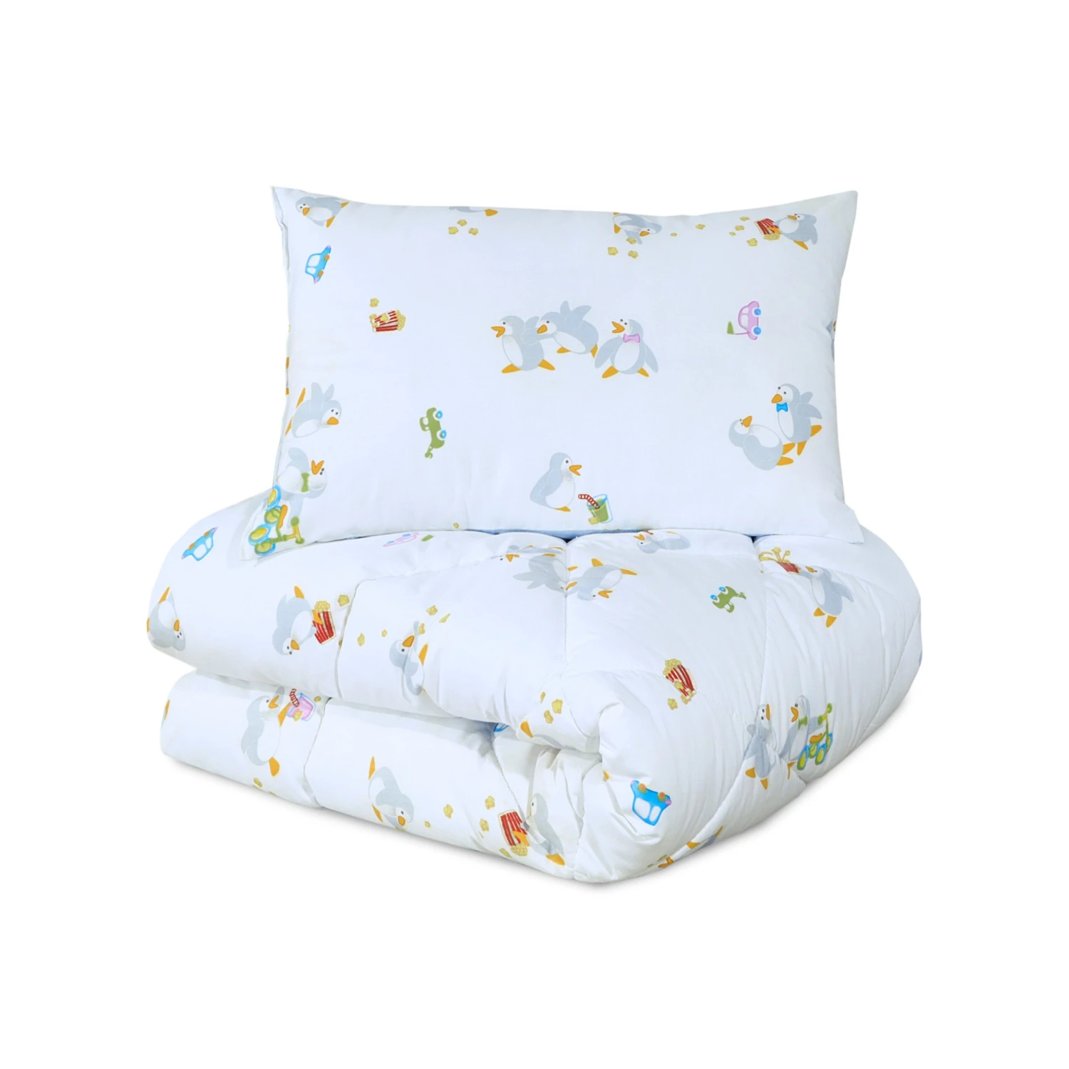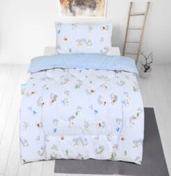 Kids and parents will love this coverless duvet and pillow set. Fun design will brighten any room and will make your kids want to go to bed and be tucked into the soft duvet. The duvet has a unique stitching pattern that keeps the fibre in place, so it should endure any amount of legs kicking, tossing and turning your child may be doing at night. Funky pattern of the quilt will be a great addition in your kid’s room. It’s a perfect product to keep your little one cosy all night. And the best part is, it can be washed in your washing machine any time! Not recommended for children under 12 months old. Keep away from fire. Ensure child’s face is uncovered.