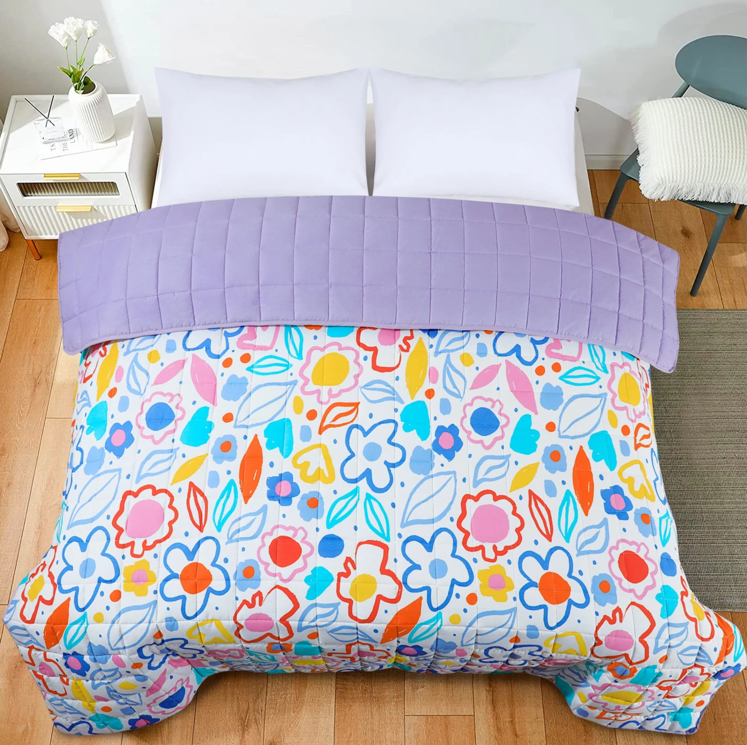 - No need for cover β reversible design allows for a quick style change when desired β saves you time, energy and money! No more wrestling with the duvet cover!Β