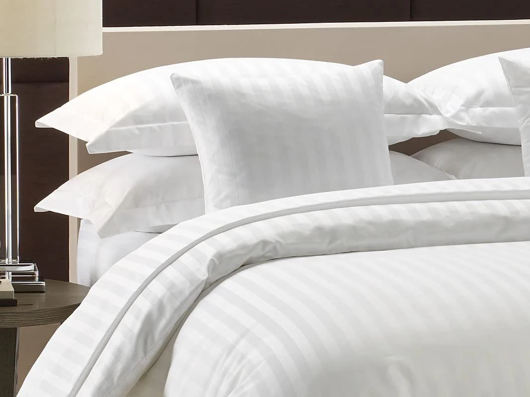 Satin Stripe Duvet Cover With Pillowcase – White(Satin Stripe Duvet Cover With Pillowcase White)